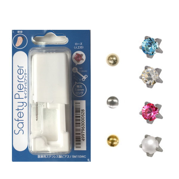 商品スペック ・販売名:セイフティピアッサー ・軸経:14G(1.6mm) ・区分:管理医療機器 ・使用回数:単回使用(1回) ・付属品:説明書 ・医療用具承認番号:20700BZY00497000 ・管理医療機器 使用上のご注意 ・金属アレルギーを起こすことが極めて少ないとの報告を受けておりますが、個人差がございますので、自己の責任のうけご使用ください。
