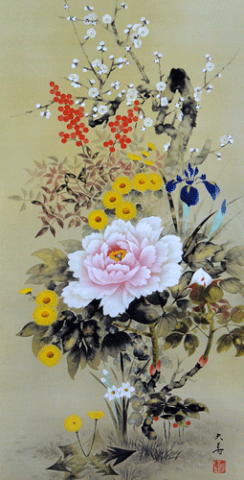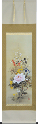 あす楽対象外地域(下記地域はあす楽に対応していません) 北海道 全域 東北 全域 信越 佐渡市 関東 伊豆諸島・小笠原諸島 九州 長崎県(北松浦郡小値賀町、五島市、西海市崎戸町平島・江島、佐世保市宇久町、対馬市、長崎市伊王島町・高島町、平戸市大島村、南松浦郡) 鹿児島県(奄美市、大島郡、鹿児島郡、熊毛郡、薩摩川内市里町・上甑町・下甑町・鹿島町、西之表市) 沖縄県 全域 ■ 商品詳細 ■ 【商品構図】 掛け軸 四季花 【サイズ】 長さ190cm×幅54.5cm(尺五立) 【仕様】 本紙=新絹本、軸先木製 特殊工芸品 桐箱入り■ 掛軸 四季花 石田大寿作 ■ 色とりどりの四季の花が御部屋を明るく演出してくれます。