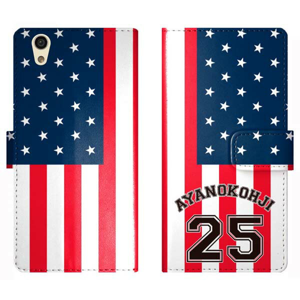 AQUOS sense SH-01K SH01K SHV40 手帳型 星条旗 背番号 名入れ 名前入り ケース カバー 国旗 アメリカ スポーツ アクオス オーダーメイド オリジナル スマートフォンケース
