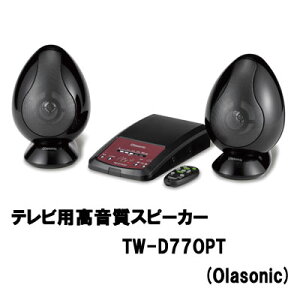 テレビ用 高音質 スピーカー 簡単 臨場感 設置 ハイパワー ワイヤレス TW-D6TV■ Olasonic テレビ用 高音質スピーカー TW-D77OPT 【商品説明】 ●ドラマ、ニュース、音楽番組など人の声がはっきり聴きやすい 「卵型キャビネット」、φ60mmコーン型フルレンジ、φ55mmフェライトマグネット、 70mm平面振動板付パッシブラジエター。