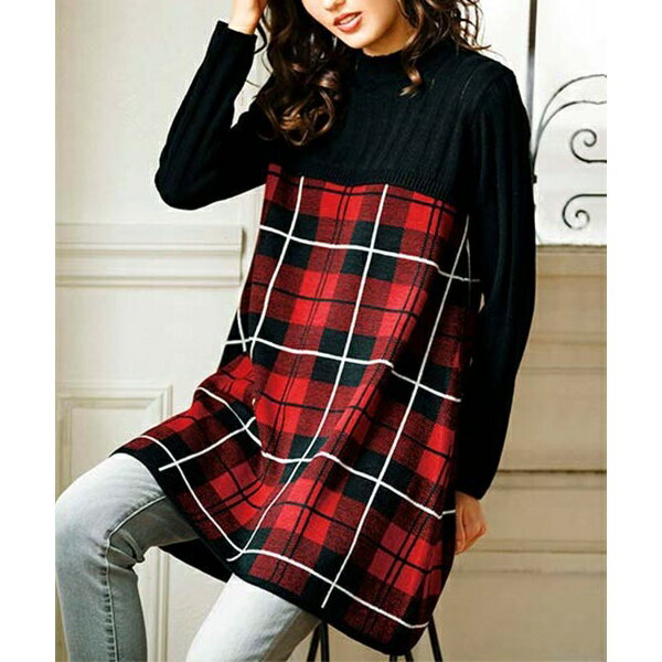 ■素材: (レッド系・ベージュ系)アクリル100%(ブルー系・モノトーン系)アクリル95%ポリエステル5% ■お手入: 洗濯機 >>商品のお取り扱い方法 ■原産国:チェック切替ニットチュニック/ラナン(Ranan)レッドケイブルーモノトーンケイベージュ画面上と実物では、多少色具合が異なって見える場合がございます。