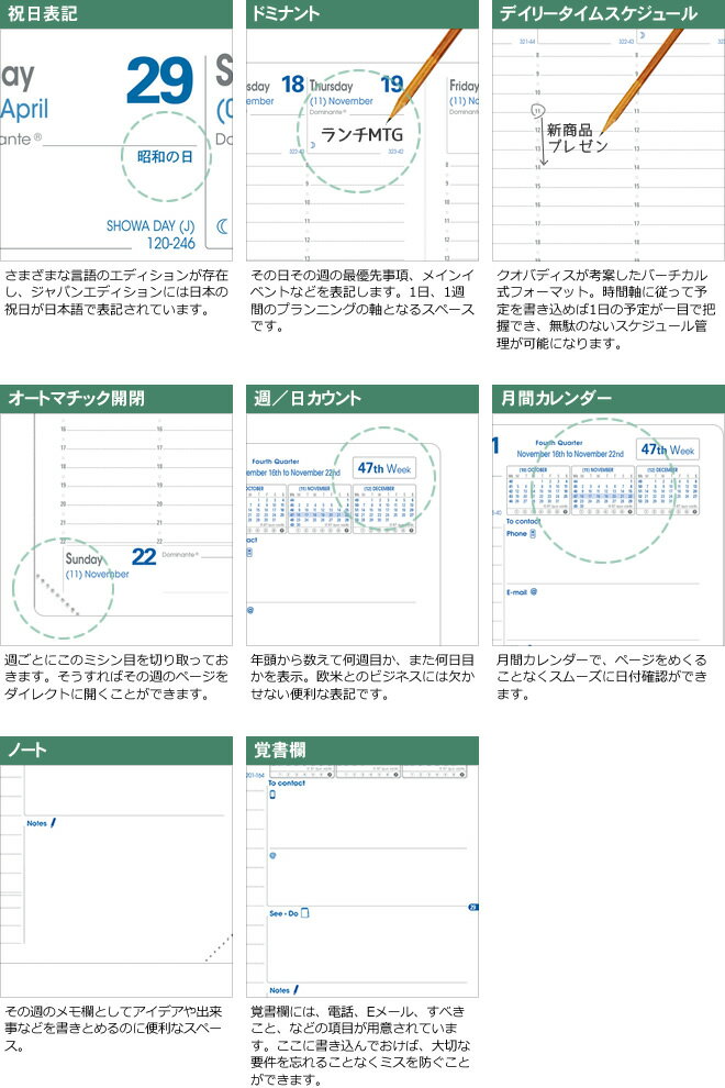 曜日ごとのNotesスペースが便利なクオバディスダイアリーです。